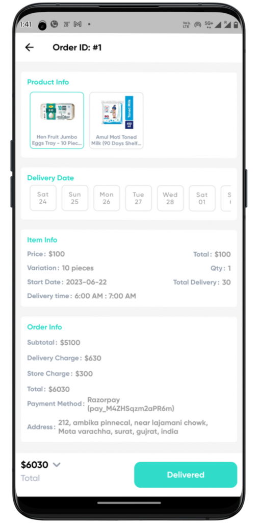 The cost of developing a milk delivery app depends on its features, design, platform, and development team’s location. A basic app may cost between ₹25,000 to ₹50,000, while an advanced app can range from ₹50,000 to ₹100,000 or more.